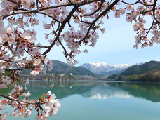 樹齢450年・群馬県天然記念物の「謙信のさかさ桜」は一見の価値あり!赤谷湖の桜並木は4月下旬~5月初旬が見頃です!残雪の谷川連峰と桜の美しい共演をお楽しみ下さい。