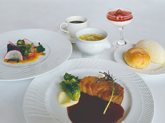 富士桜ポークのロティ・季節のオードブル・旬野菜のスープ・・パン・プチデザート