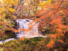 秋にはイロハモミジが滝の美しさを引き立たせます♪