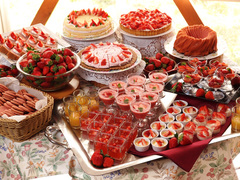 いちご一会はビュッフェ形式(食べ放題形式)です。女性やお子様に大人気のスイーツは常時15~20種類豊富にご用意♪
