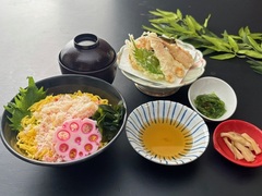 右写真:かに喰亭ますよね かにちらし天婦羅御膳