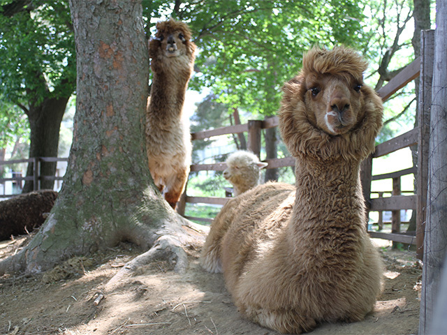 標高1,000mの八ヶ岳の麓にあるアルパカ牧場で昨年生まれた子供を含めのびのびと暮らしています。キュートな瞳のアルパカたちに癒されましょう♪