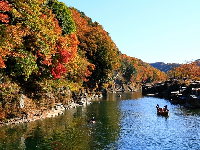 渓谷の景観と紅葉が一体となり、カラフルな紅葉が水面にユラユラと映るアツい季節に清流で涼を感じる夏の時期とはまた一味違った、幻想的な光景を一度にお楽しみください★