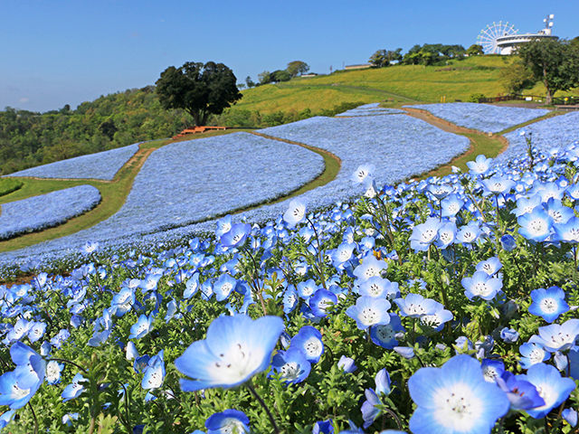 マザー牧場の【ネモフィラ】の花畑もぜひお楽しみください♪開花時期4月中旬~5月上旬まで