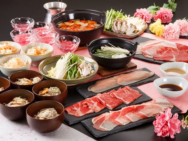 しゃぶしゃぶ(①牛肉 ②豚肉 ③鶏肉 ④野菜)