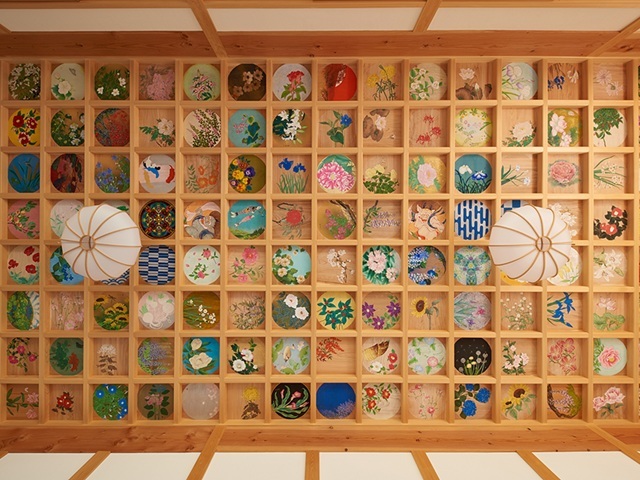 客殿には、猪目窓(いのめまど)と160枚の天井画があります。