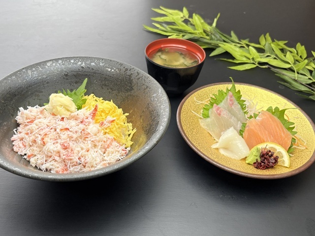 右写真:海鮮かに処甲羅亭 カニほぐし身丼セット