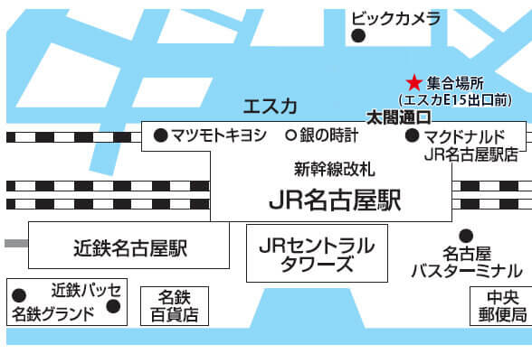 夜行バスのバス市場 > 乗車場所一覧 > 日帰りバスツアー > 東海エリア > オリオンツアー主催 > JR名古屋駅 西側 太閤通口広場